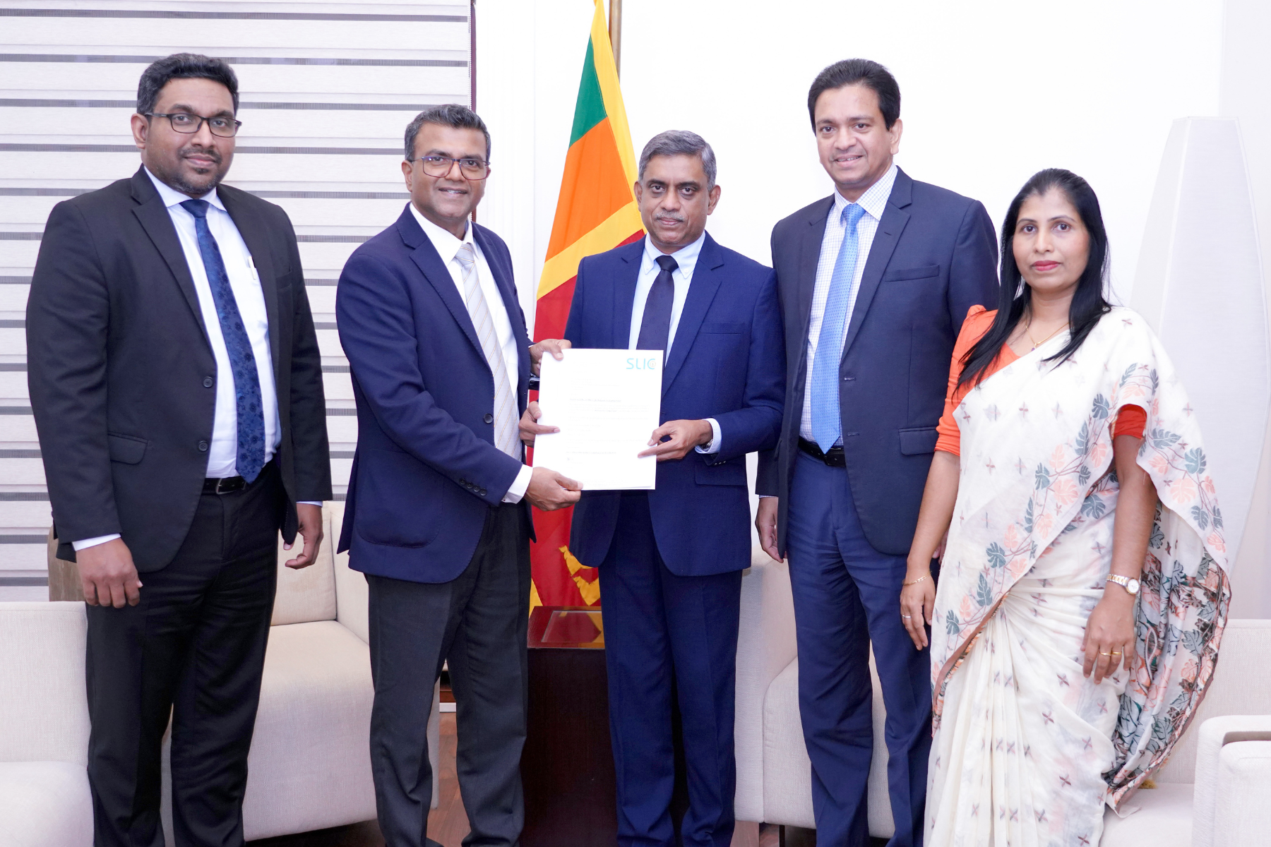 Photo Caption: (L-R) Dr. Sameera Dharmasena (CEO – SLICGL), Dr. Harshana Suriyapperuma Secretary to the Treasury (Ministry of Finance, Planning and Economic Development), Nusith Kumaratunga (Chairman – SLIC), Nalin Subasinghe (CEO – SLICLL) and Sriyani Kulasinghe (CFO – SLIC Life)