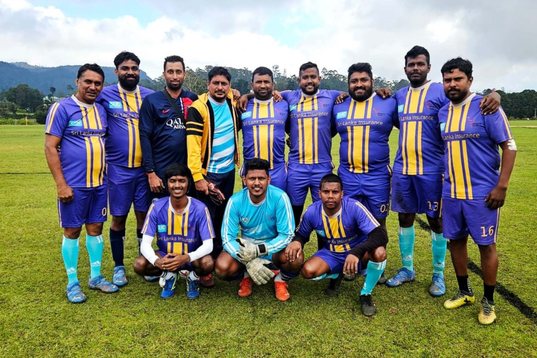 Standing (L-R): Manoj Nishantha, Yasas Yuthmal, Anju Rajapakse, Madusanka Pushpika, Asanka Perera, D.M. Isuru Dissanayake, Prasath Madusanka, Ruchira Perera (Captain), and Dileepa Lakshitha.